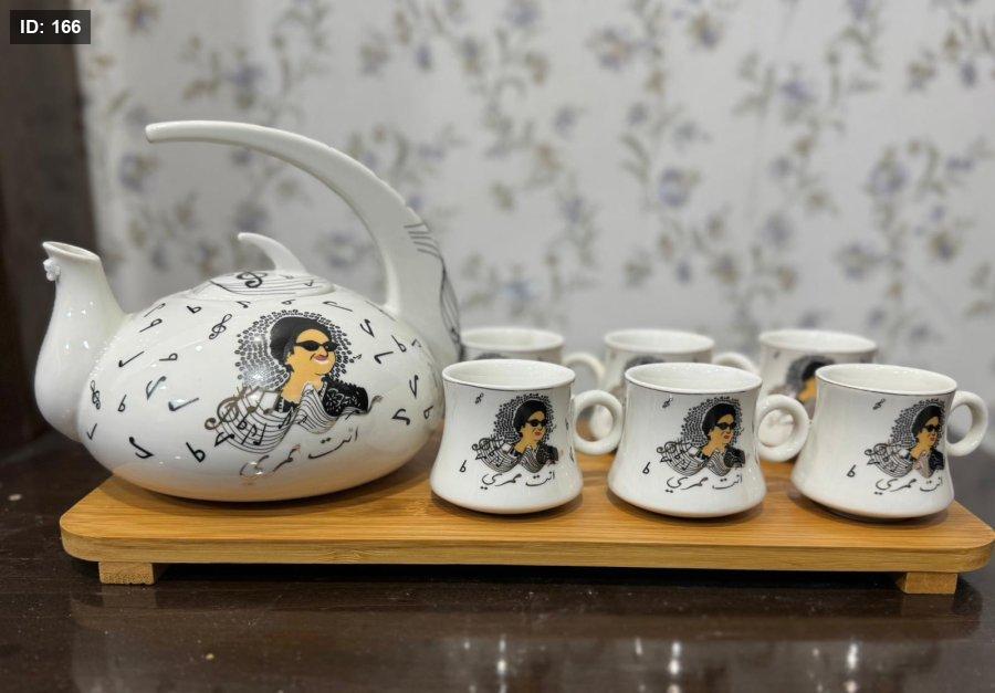 طقم ام كلثوم ابريق 6 فناجين مع صينيه