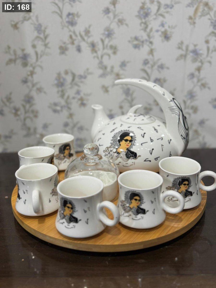 ابريق ام كلثوم مع 6 فناجين مع صينيه مع سكرية